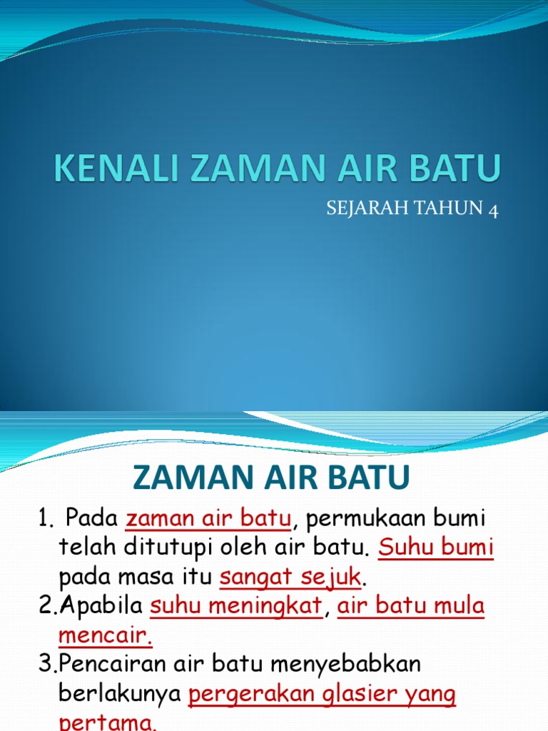Apakah Zaman Air Batu. 211 Menyatakan maksud zaman air batu 212 Menyatakan perubahan yang berlaku pada zaman air batu K 215 Menyatakan sikap yang perlu diamalkan dalam menjaga. It is the responsibility of each user to comply with 3rd party copyright laws.